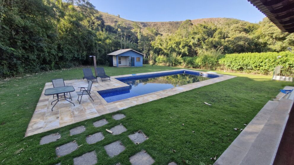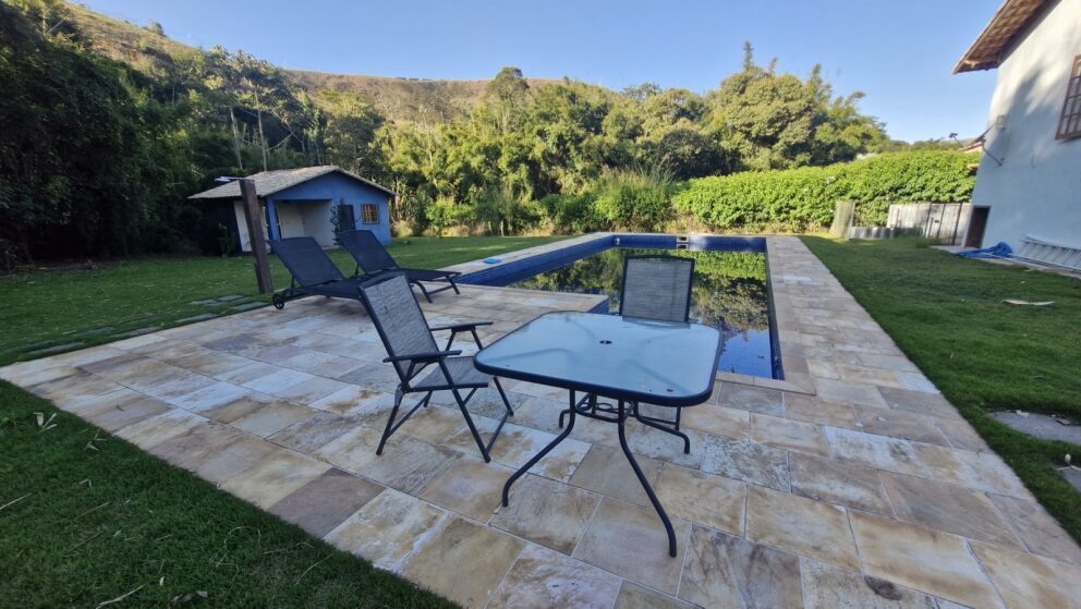 Piscina azulejada com 50m², ideal para lazer e momentos de descontração