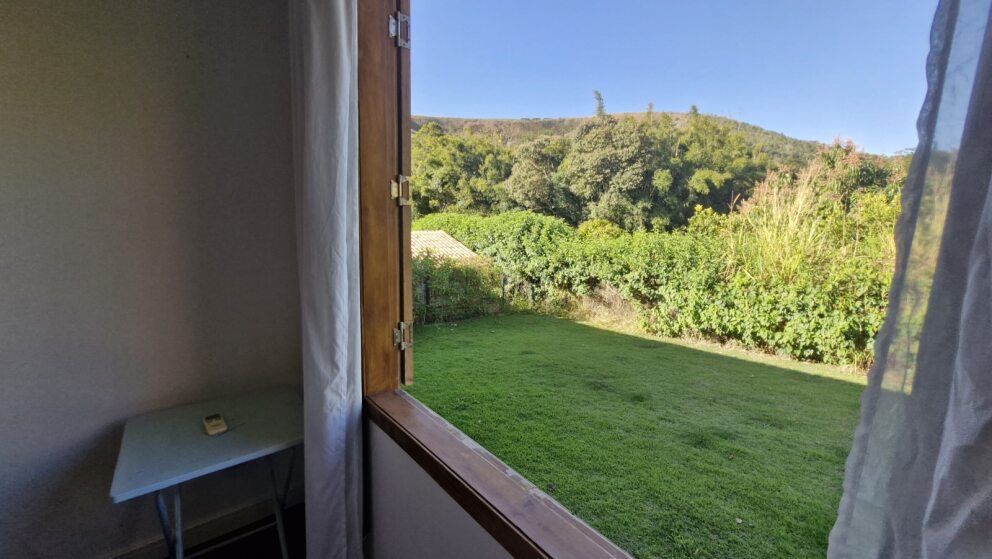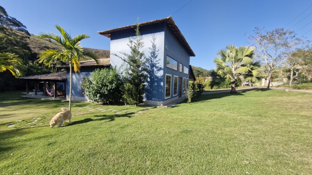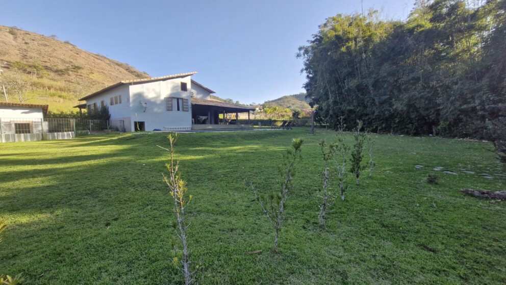 Quintal amplo e gramado, com paisagismo encantador e casa de caseiro